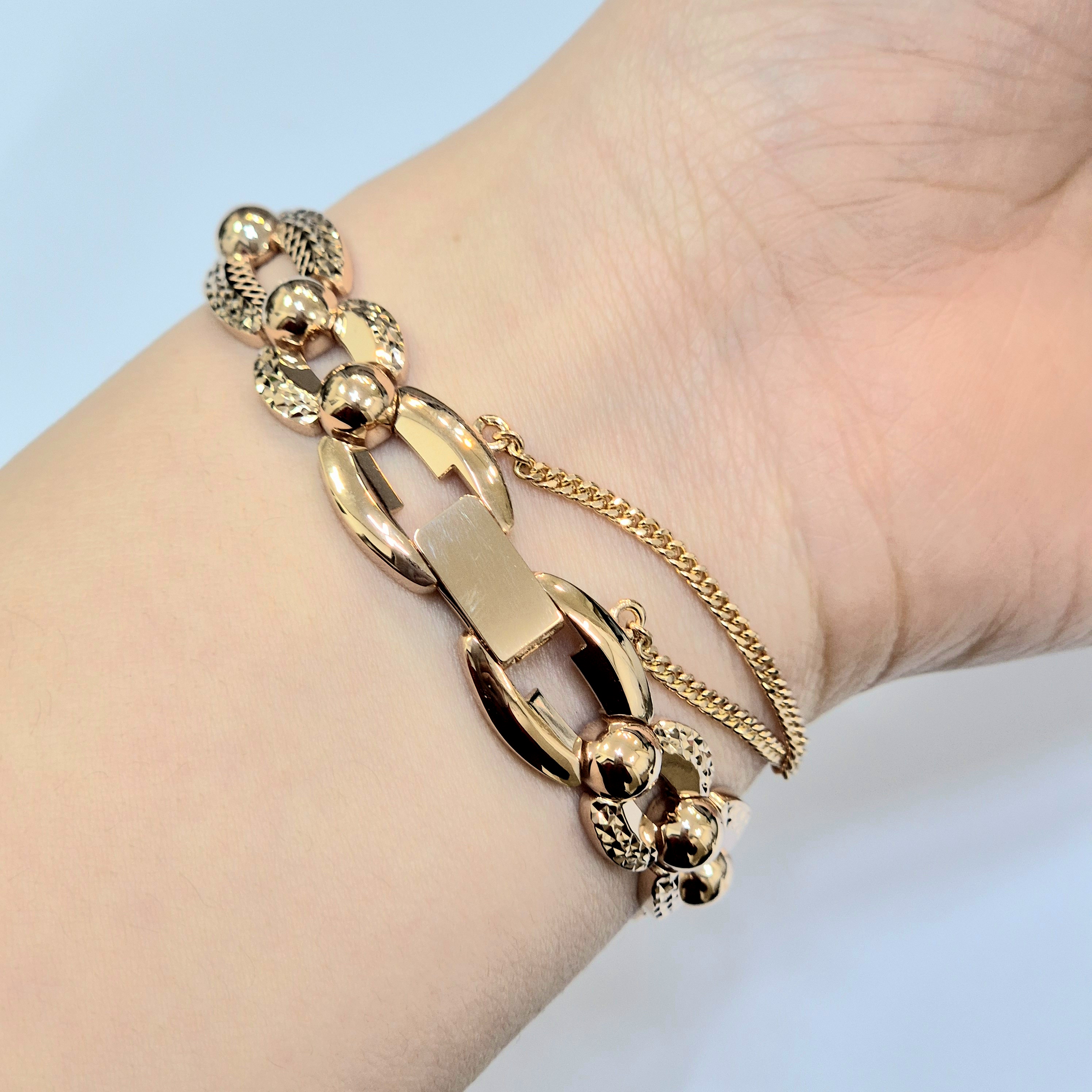18K 금 오픈 체인 컷팅 여자 엔틱 팔찌 18.75g