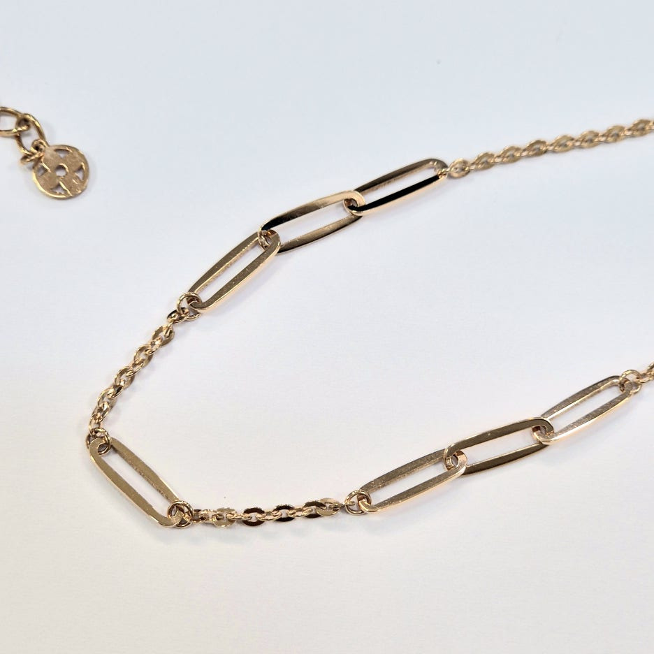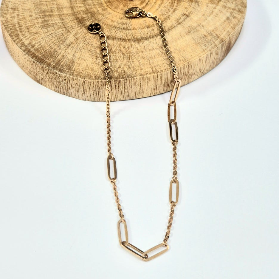 📌 얇은 체인과 길쭉한 사각 형태의 클립형 링크가 조화롭게 연결된 디자인